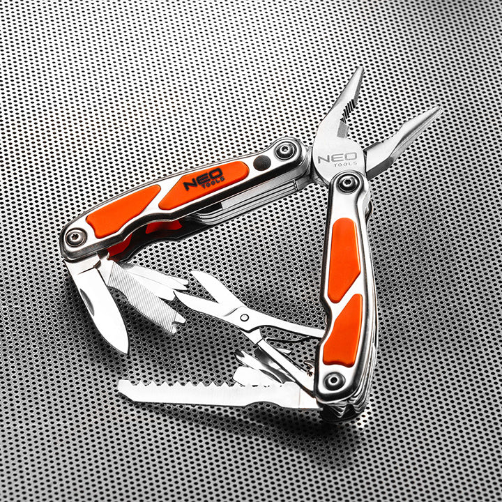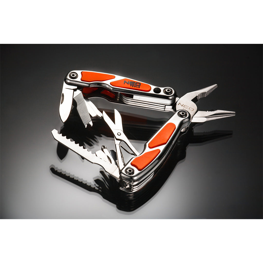 NEO multipurpose tool is an innovative solution. One tool comprises 13 various features, including the most popular PH2 screwdriver, sharp knife indispensable in many situations and slotted screwdrivers in many sizes. Tool comes in convenient case made of durable nylon for easy carrying and storage. NEO brand meets expectations of professionals.