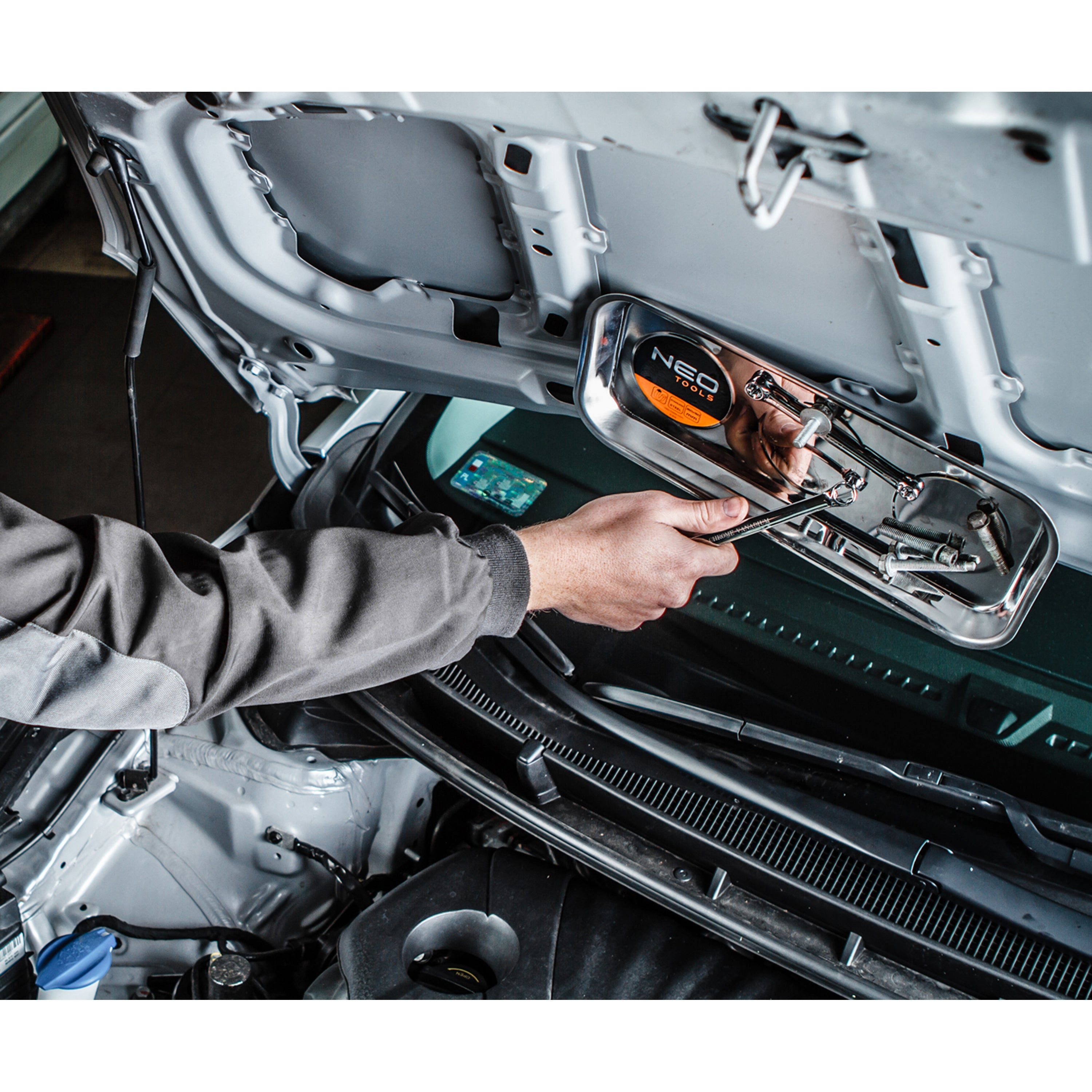 This stainless steel magnetic tray (245x145mm) securely holds screws, nuts, and bolts during repairs. Strong magnet keeps parts safe from loss, making it a handy workshop accessory.