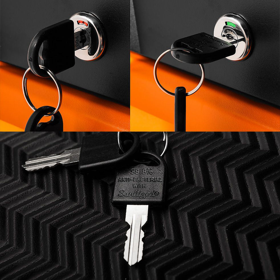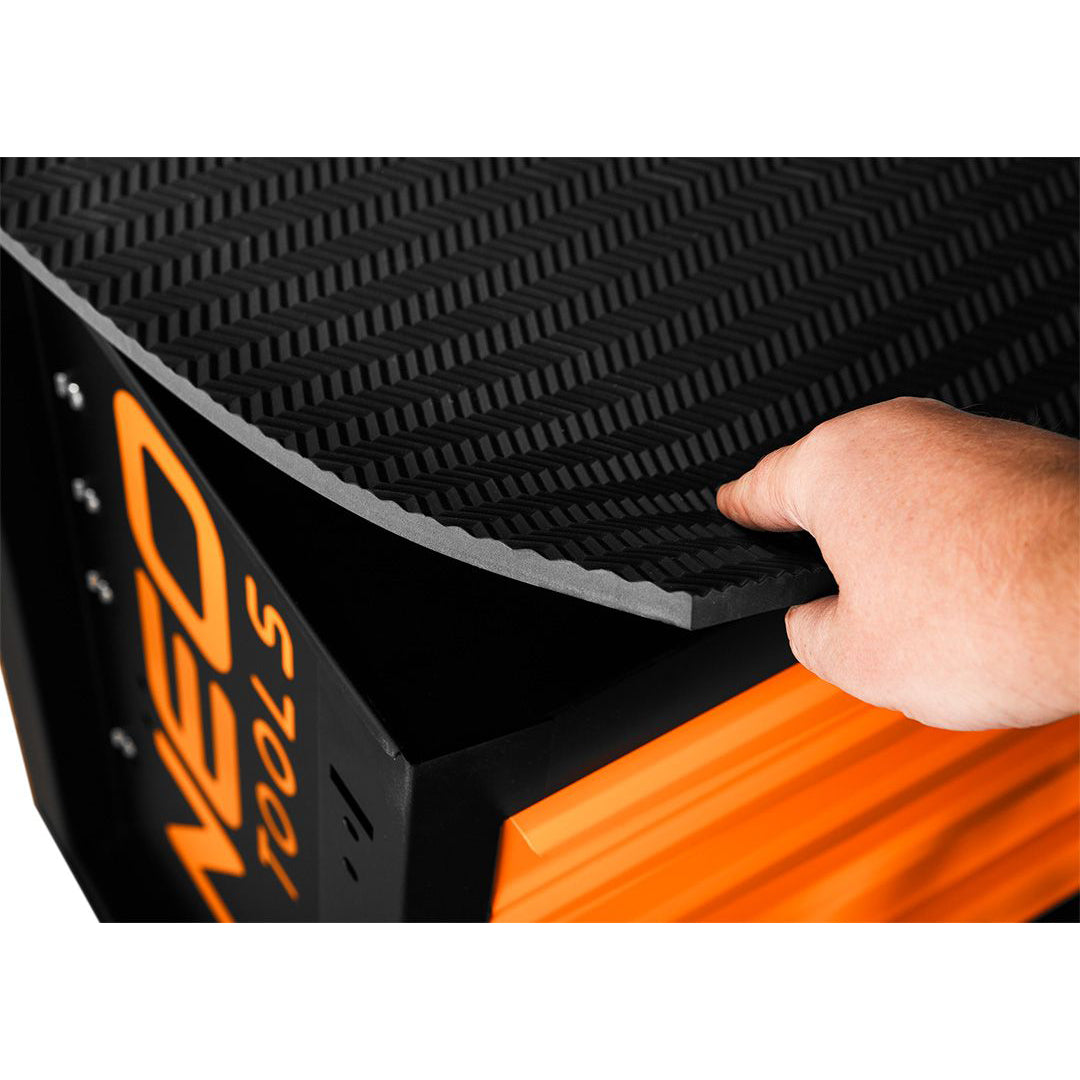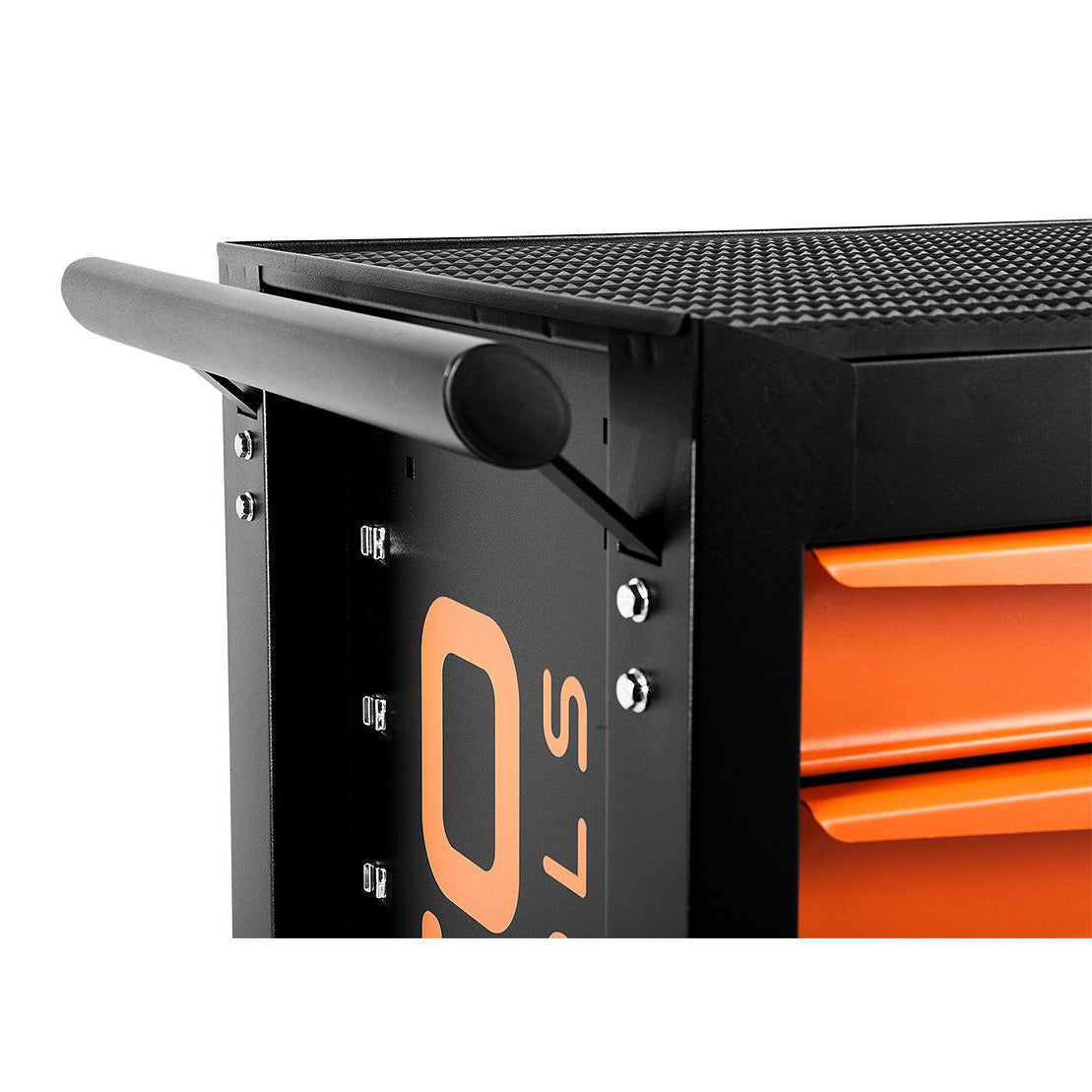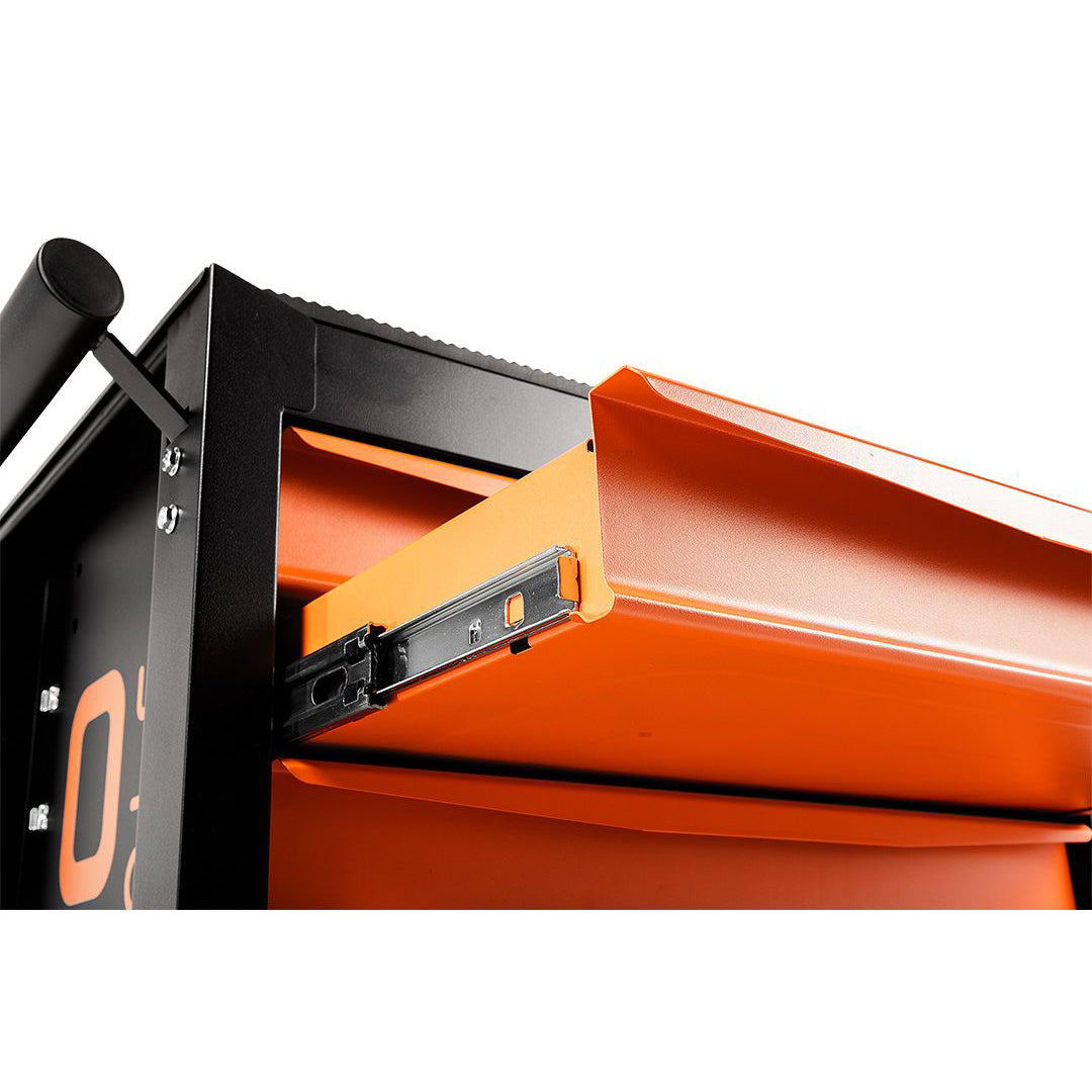 Workshop Cabinet, 5 drawers + 117 tools 84-214-6 by NEO TOOLS is a 680 x 460 x 825 mm accessory cabinet with a load capacity of 280 kg. It has a robust steel body, central locking, rubber lining on the top and ball bearing slides. Thanks to the locking wheels, their 4" diameter and the side handle, it is easy to transport. Two keys secure the contents. Cabinet offered with selected inserts with part numbers: 84-230, 84-234, 84-236, 84-237, 84-238, 84-247. This is an extensive NEO TOOLS set containing most of the necessary items for mechanical repairs. Workshop cabinet with contents recommended for professionals and DIY enthusiasts.