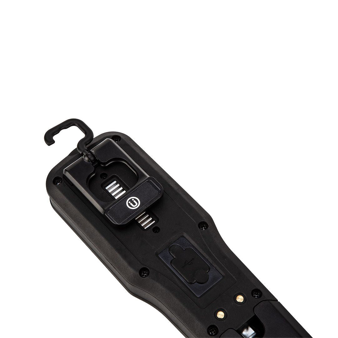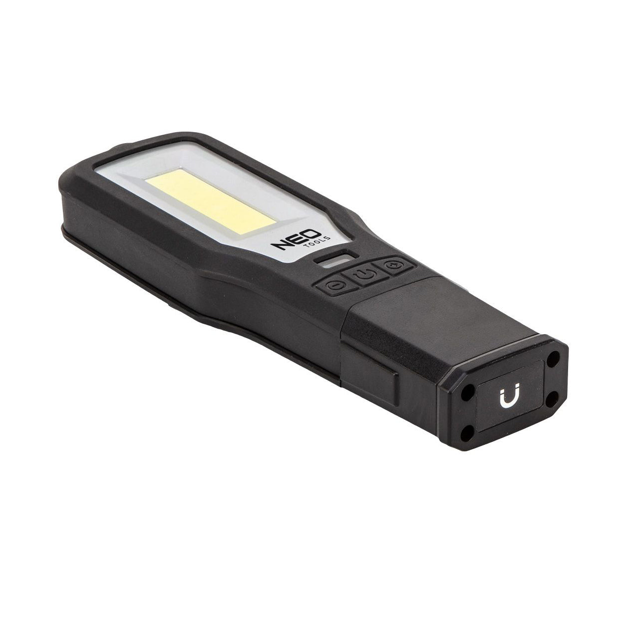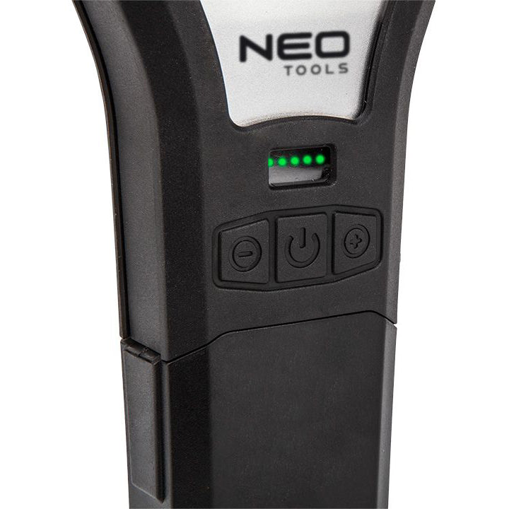550 lm COB LED workshop lamp + base + charger 99-071 by NEO is a practical, portable 2-in-1 device. It offers a workshop lamp (550 lm 10 W) and a flashlight (150 lm 5 W) in a set with useful accessories. The product has a battery charging indicator, dimming and brightening function, power bank function, red light option, and a 360 degree swivel head. The lamp is powered by a lithium-ion 3.7V 2000 mAh battery. The full charging cycle is 3 hours, after which the device can continuously shine for 180 minutes. The set includes 230V charger, 2 magnets, mounting hook and USB C cable, which can also charge your phone. The 2 in 1 lamp is recommended for every workshop, garage and garden.